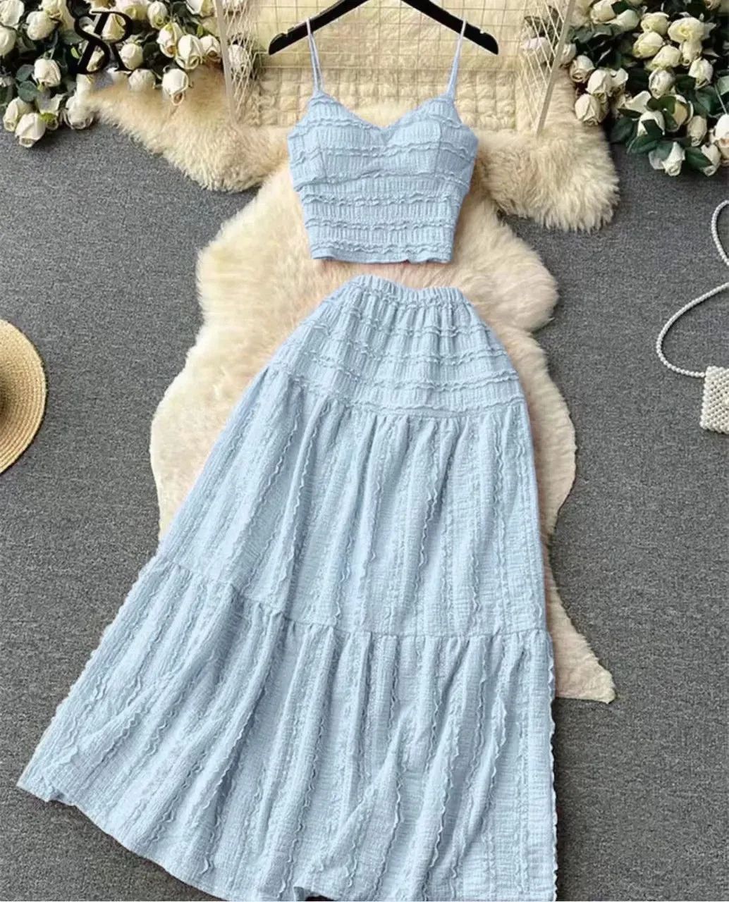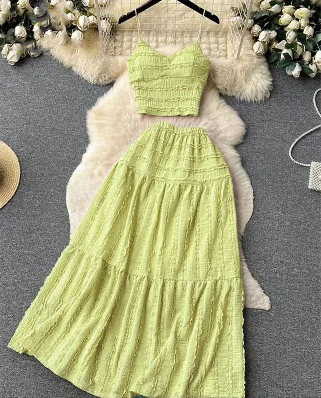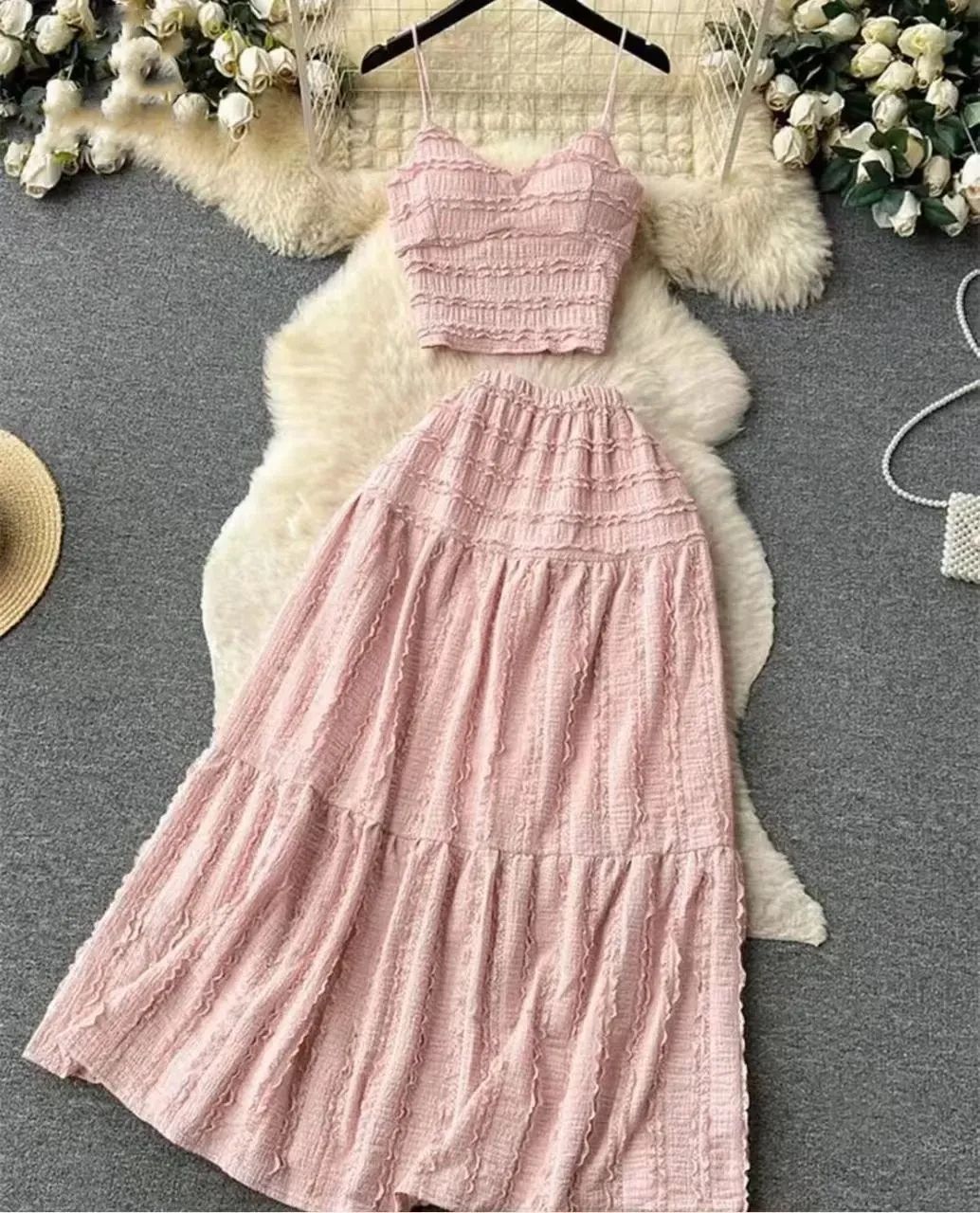 Casual Solid Two-piece Set, Off Shoulder Button Front Crop Top & Long Skirt Outfits, Women’s Clothing