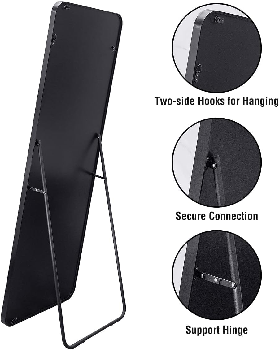 ZS - 146 x 36cm Self Standing Full Body Mirror, Full Length Mirror with Stand Black, Full Body Mirror, Metal Frame Full-Length Mirror for Living Room